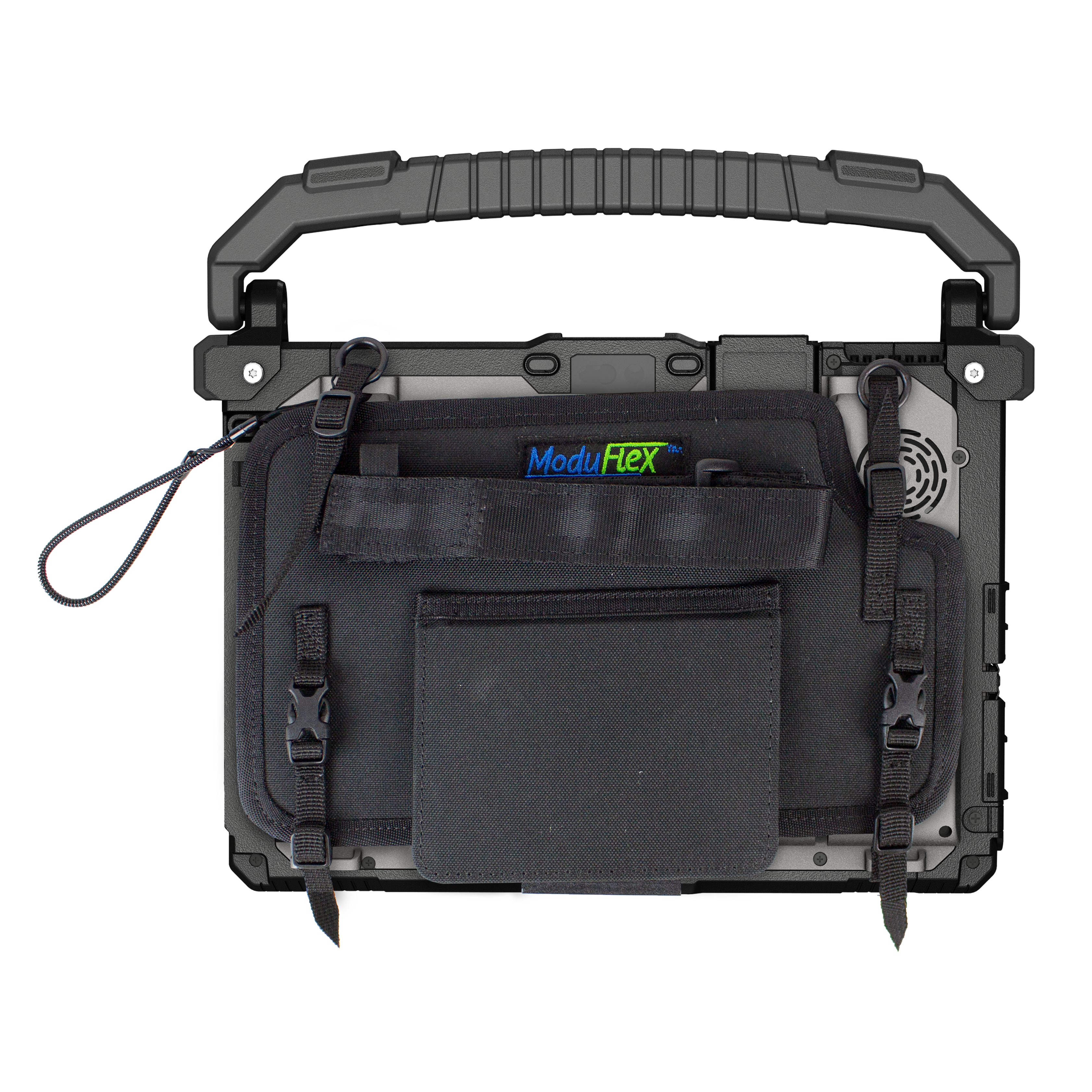 Integrated retention straps wrap securely around rugged device handles, ensuring tablets and laptops remain stable during movement. This secure design keeps equipment accessible without restricting access to ports or controls. The ModuFlex Shoulder Strap Kit promotes efficient task management by enabling quick transitions between carrying and active device use in high demand professional settings.